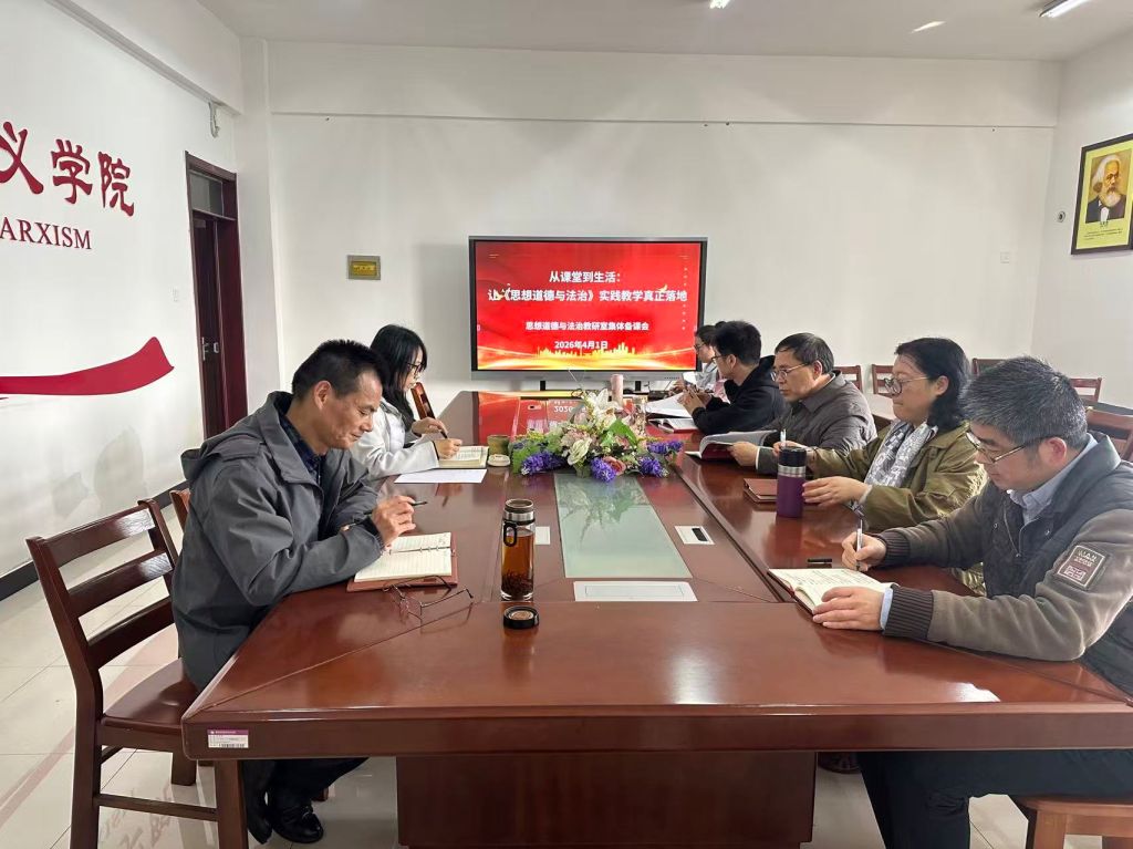 为深入推进思想政治理论课改革创新,切实提升《思想道德与法治》课程教学实效,4月1日下午,思想道德与法治教研室在明德楼四楼419会议室组织召开了集体备课会,教研室全体教师参加了会议,会议由教研室主任赵飞主持。